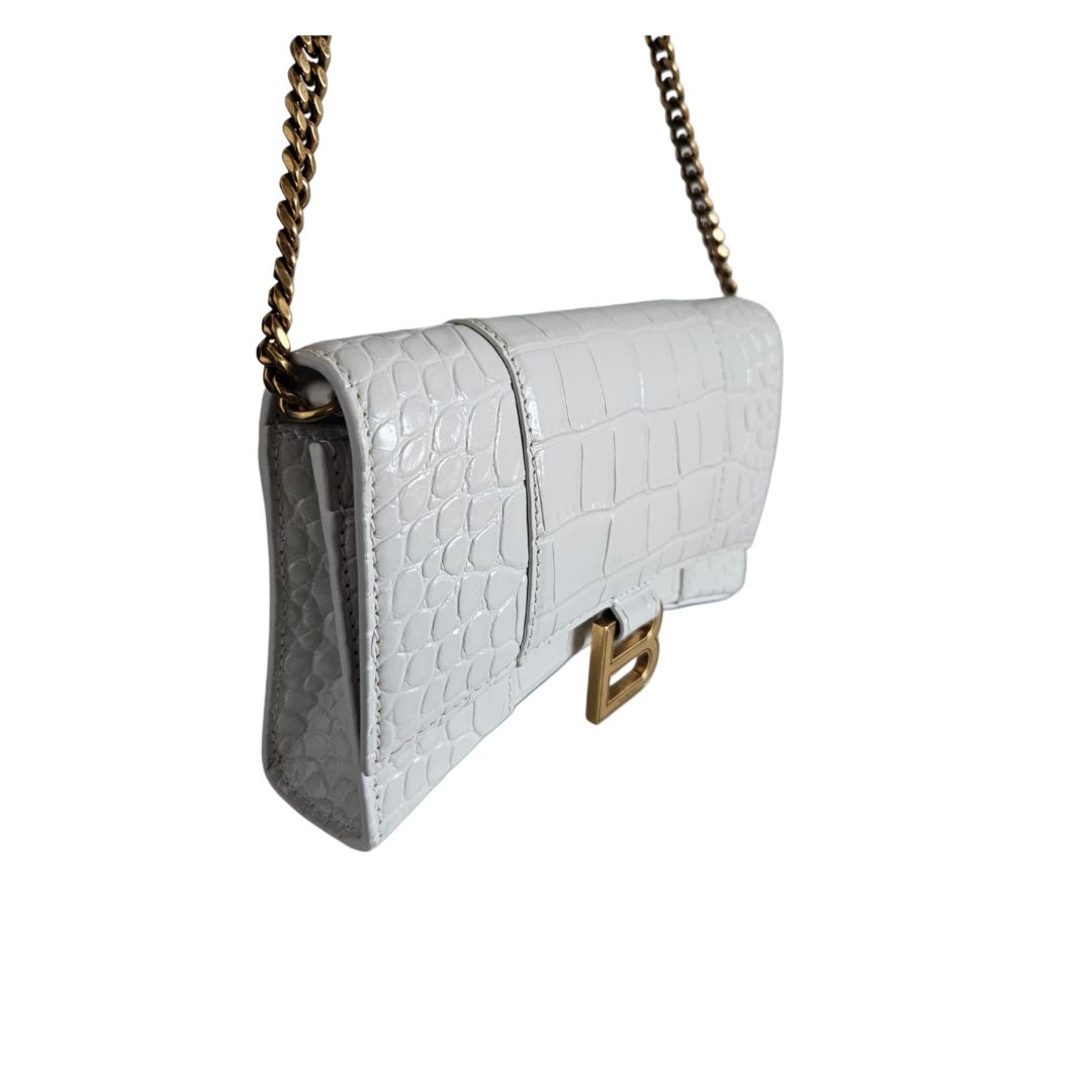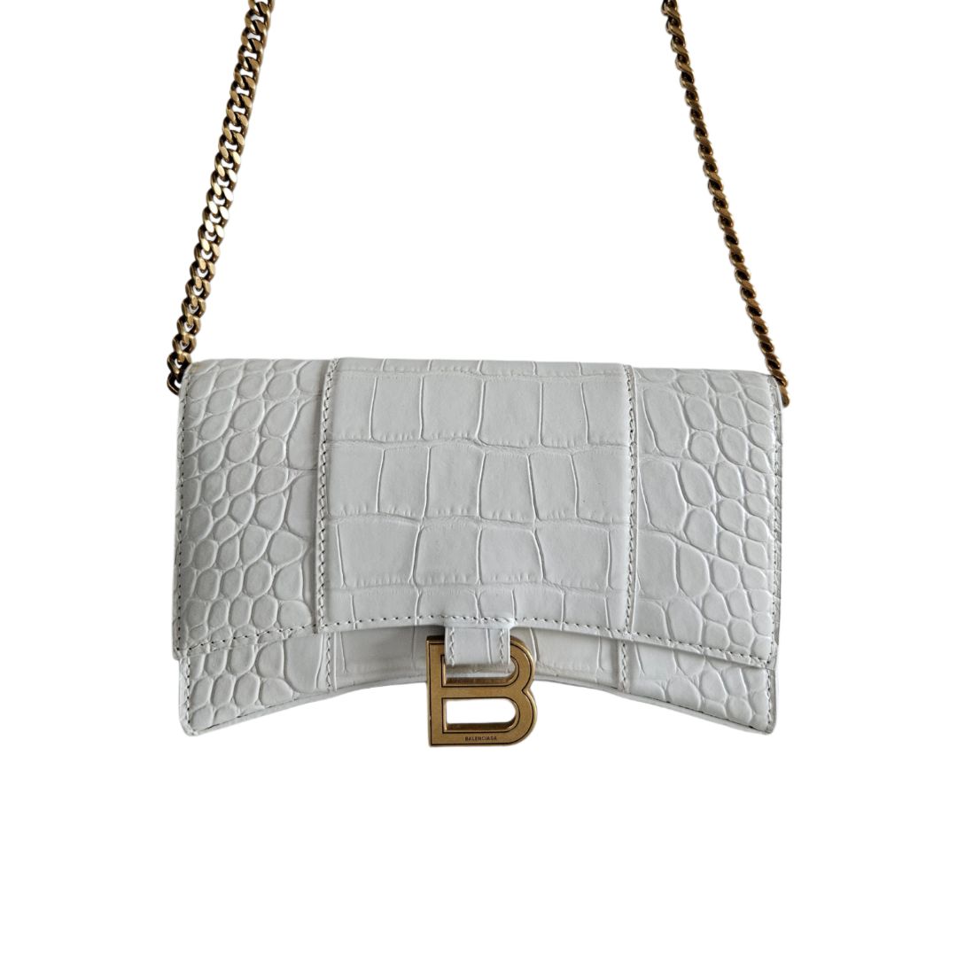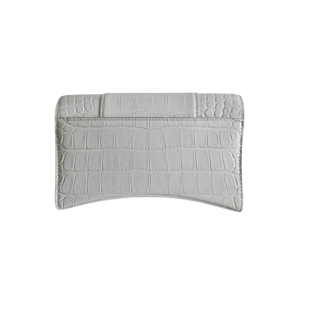 Balenciaga White Croc Embossed Leather Hourglass Wallet On Chain