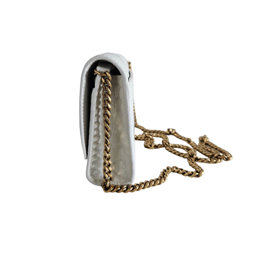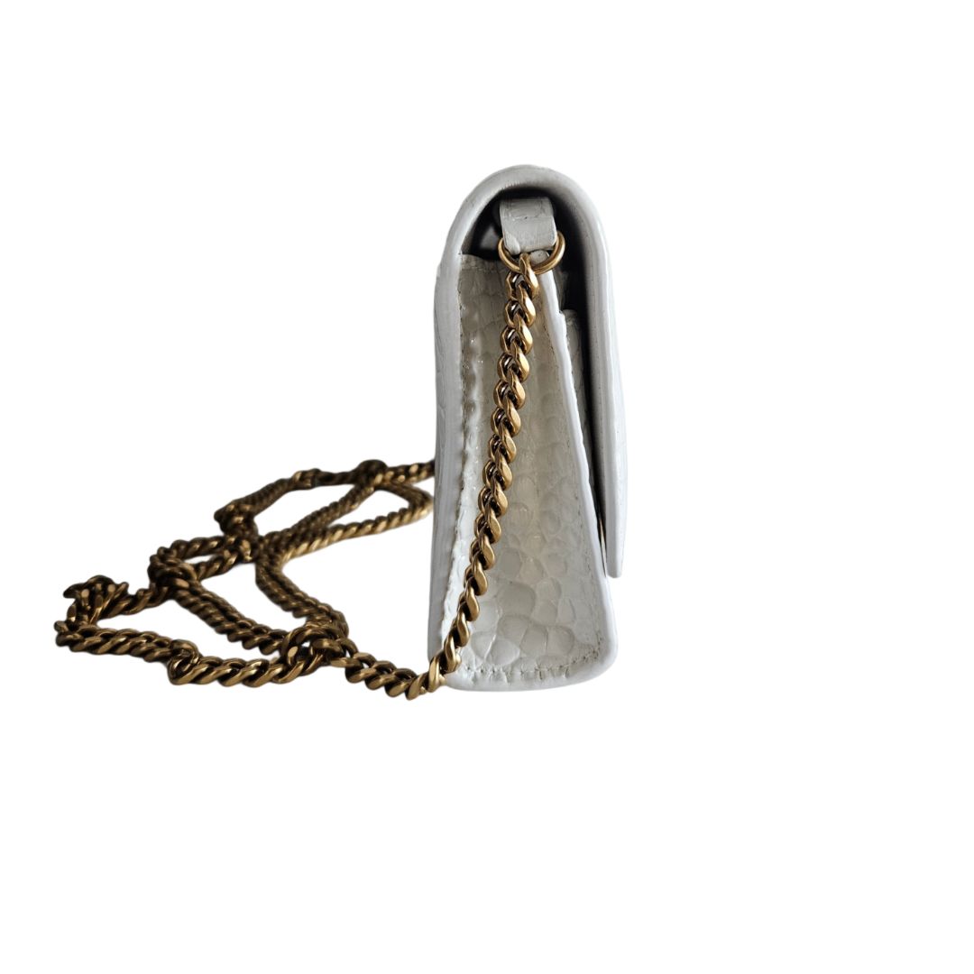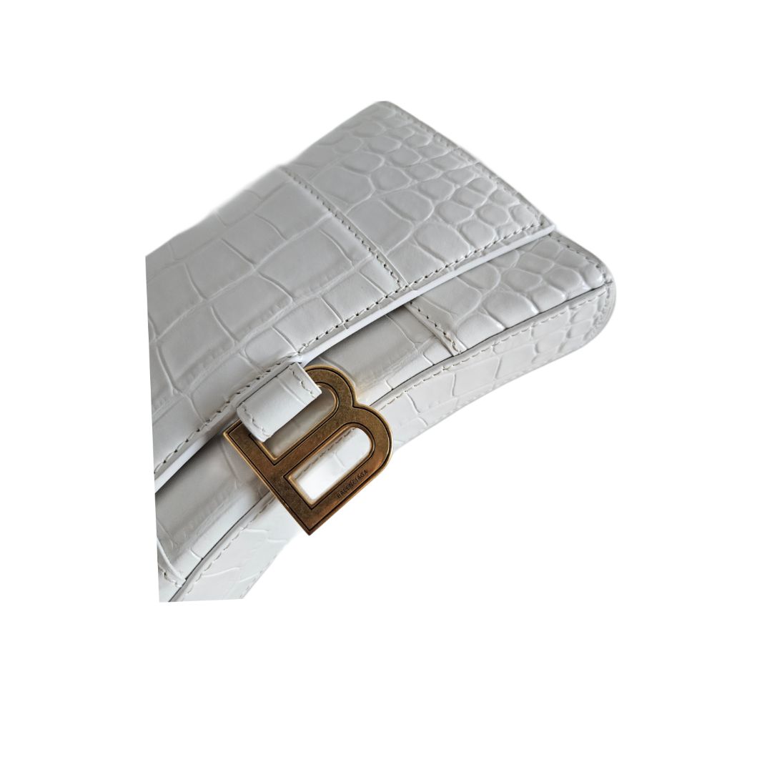 Balenciaga White Croc Embossed Leather Hourglass Wallet On Chain
