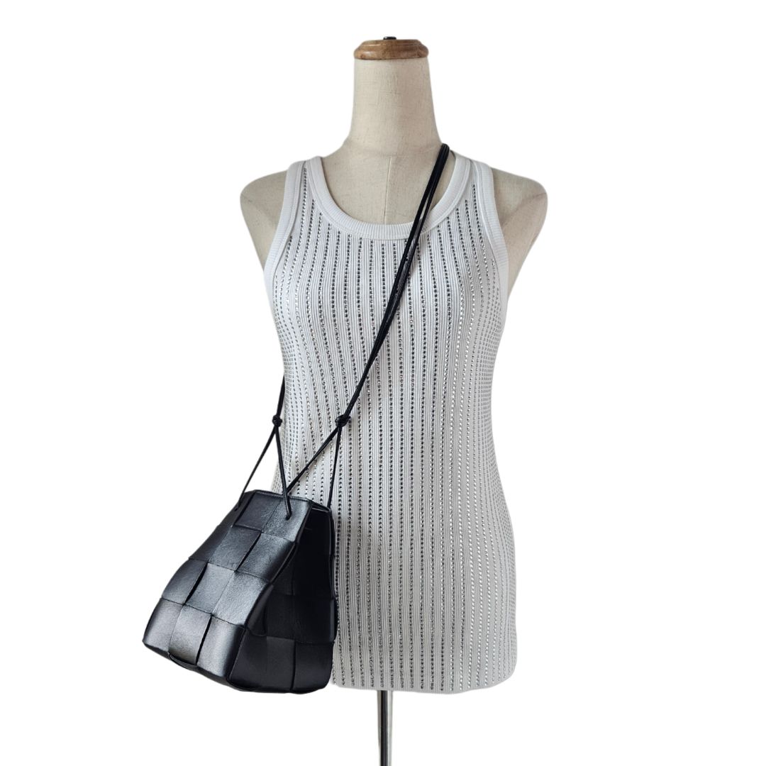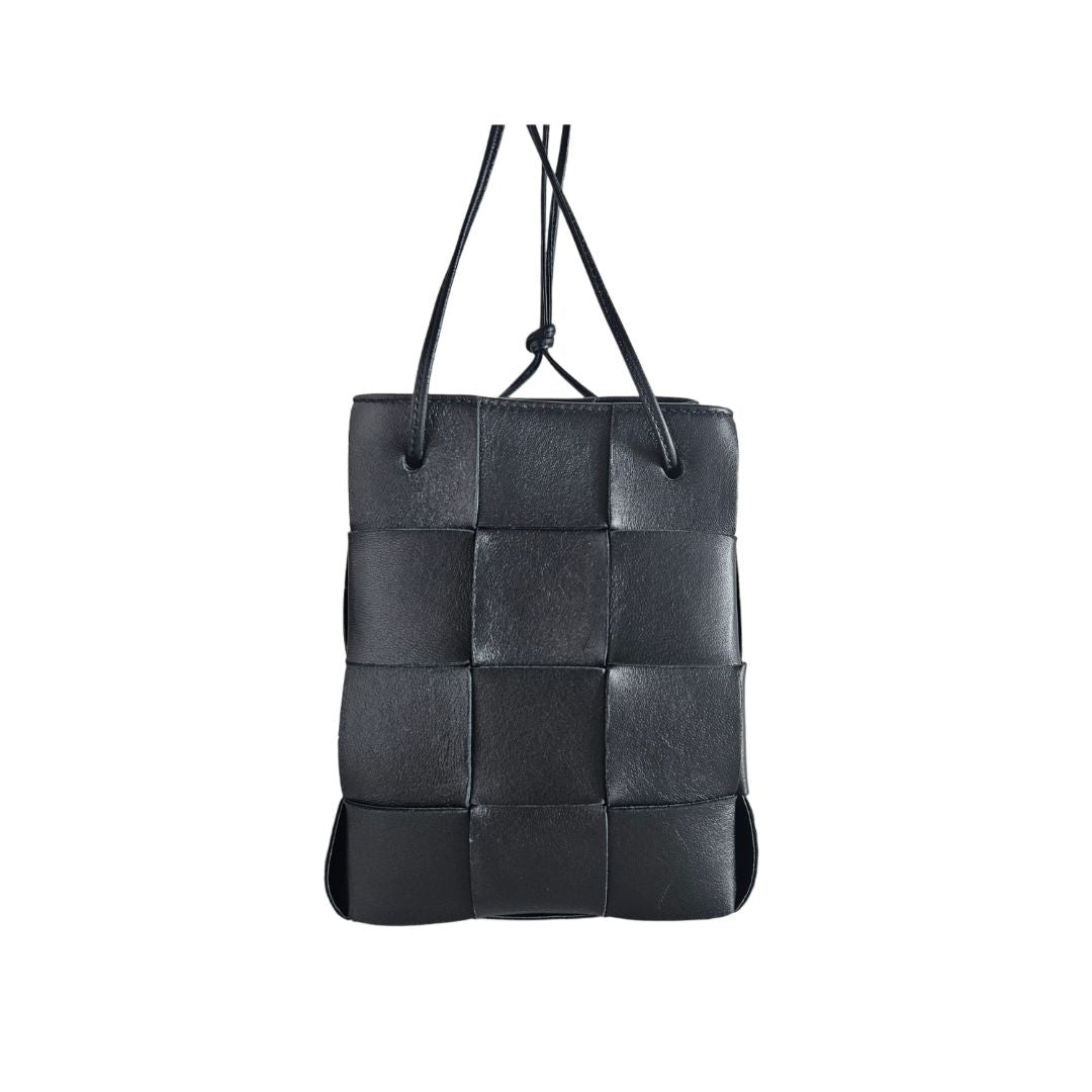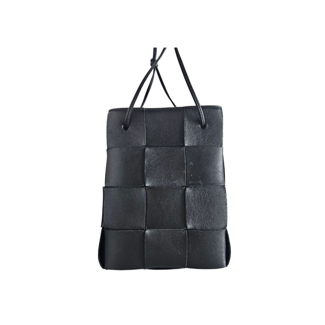 Bottega Veneta Black Leather Mini Cassette Bucket Bag