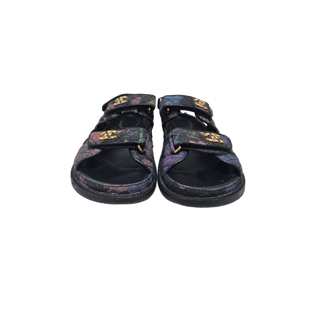 Chanel Multicolor Pearl CC Denim Dad 2021 Flat Sandal size 38C