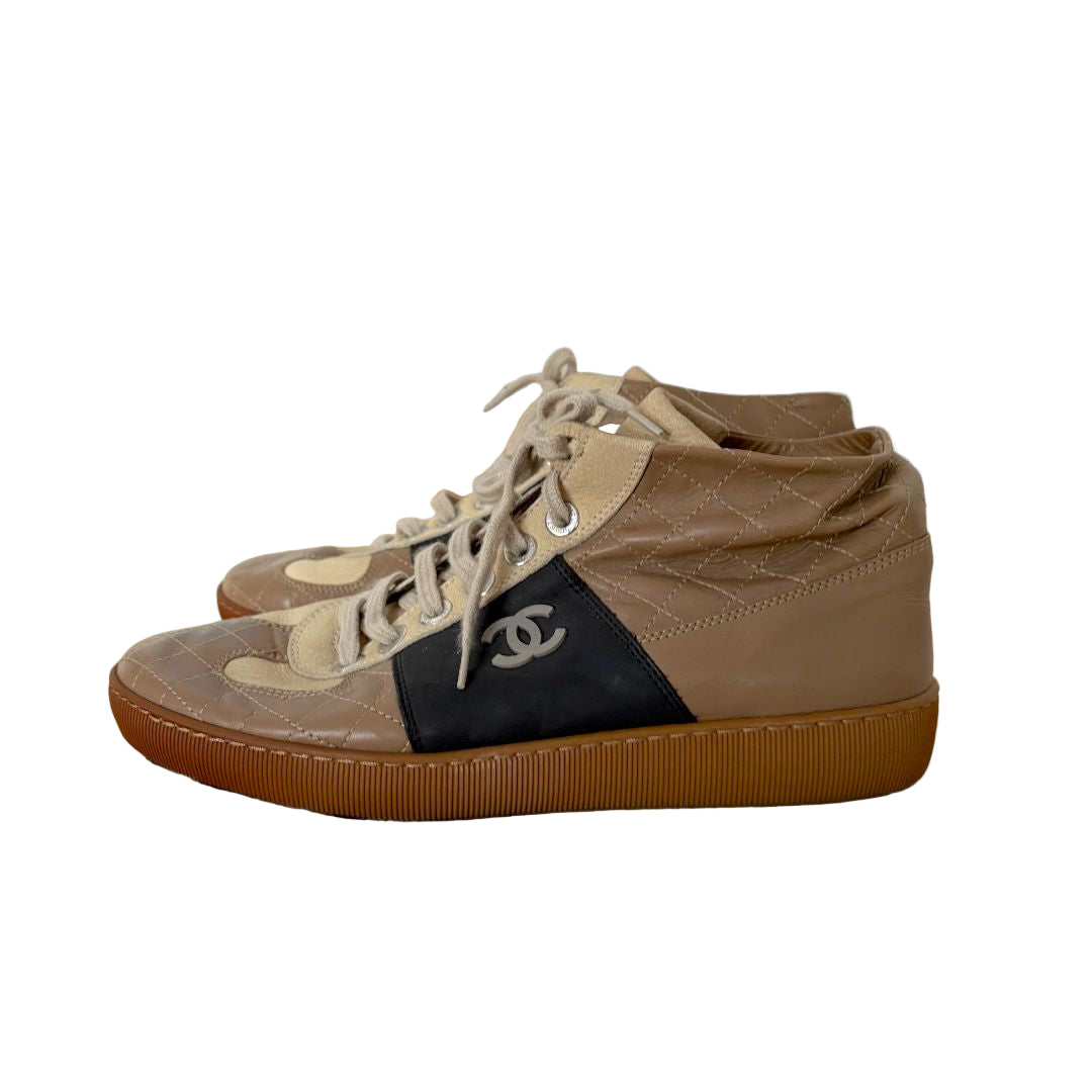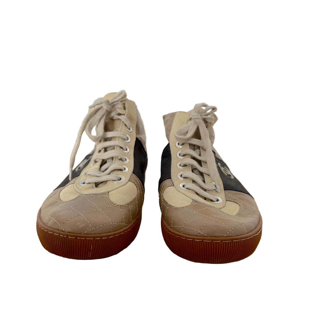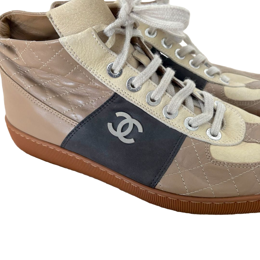 Chanel Tircolor Quilted Leather CC HIgh top sneakers, size 41.5