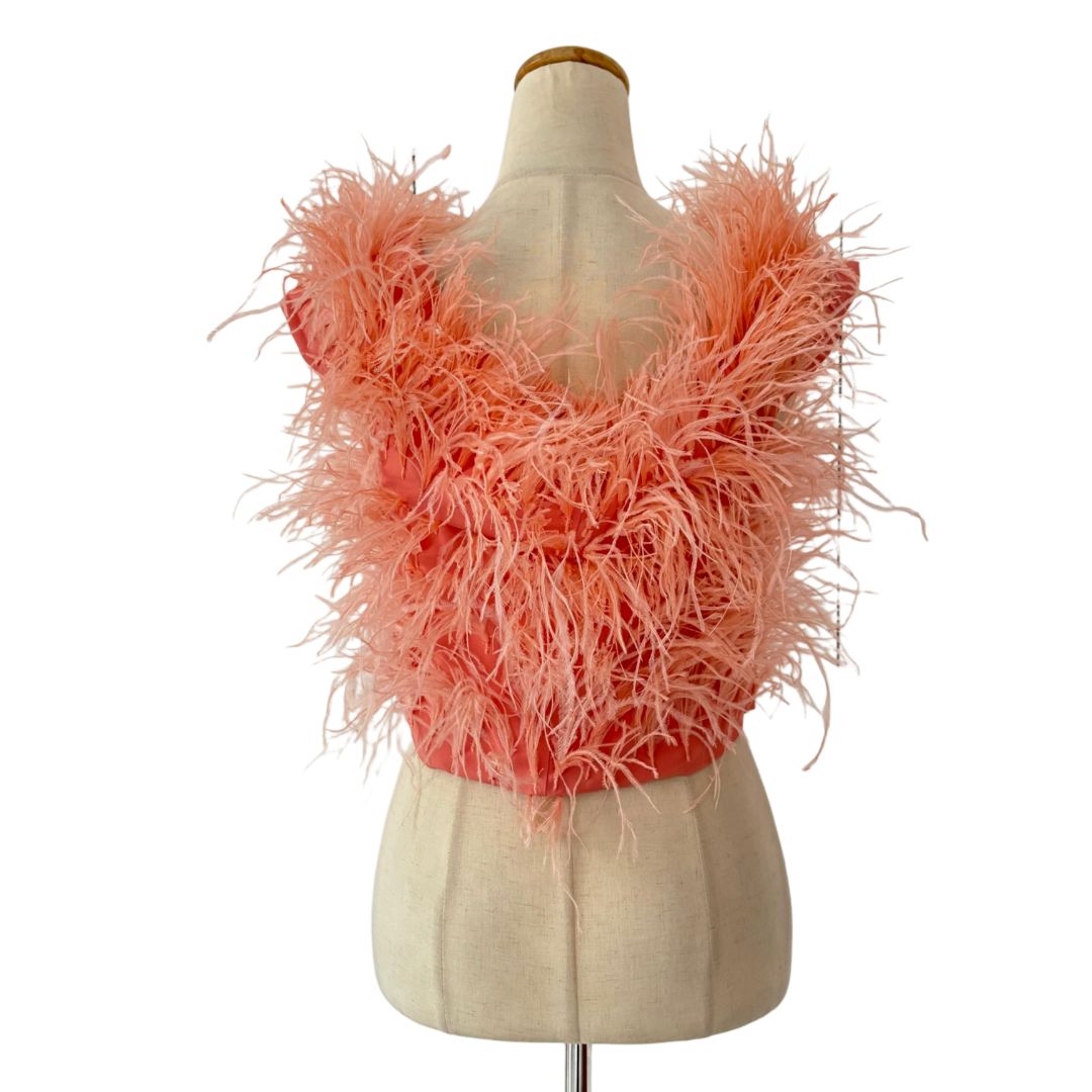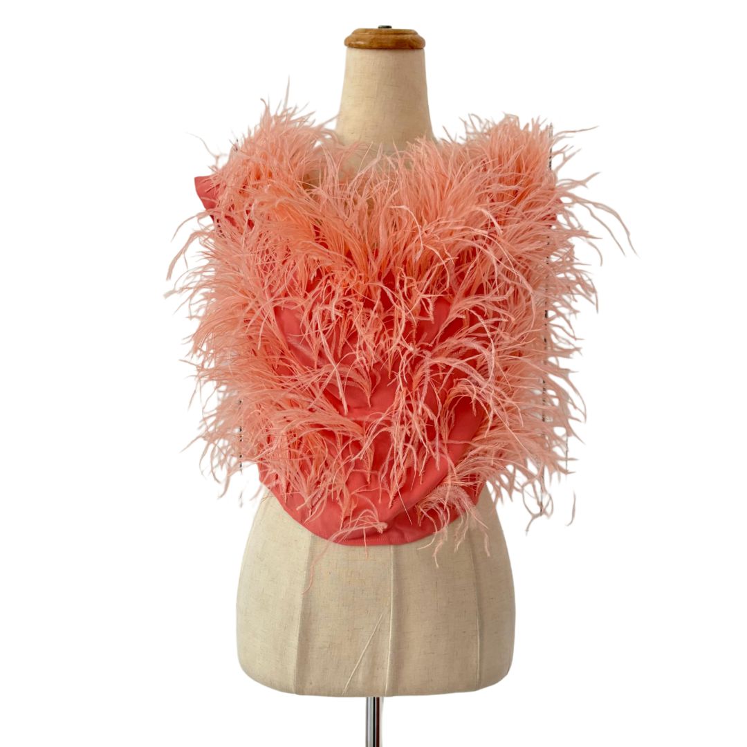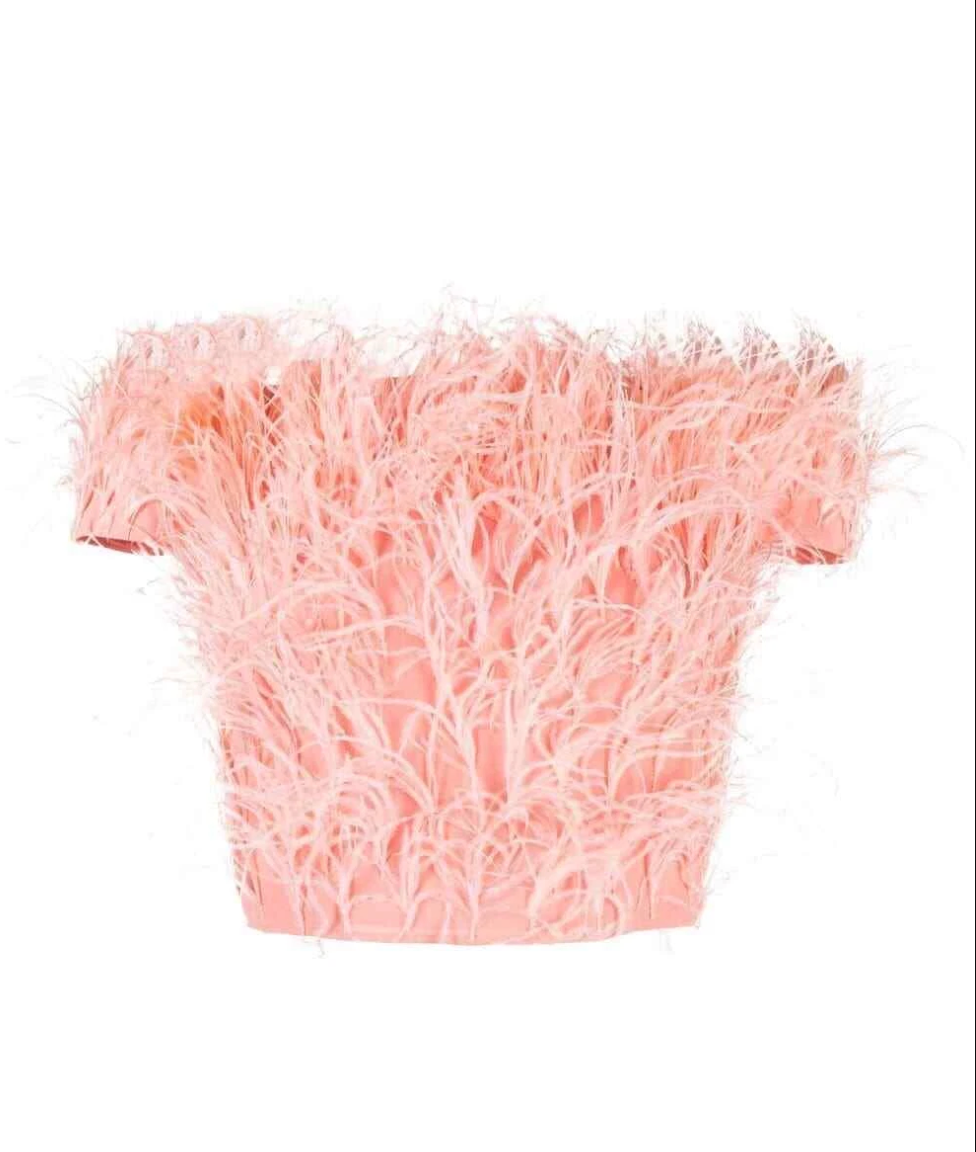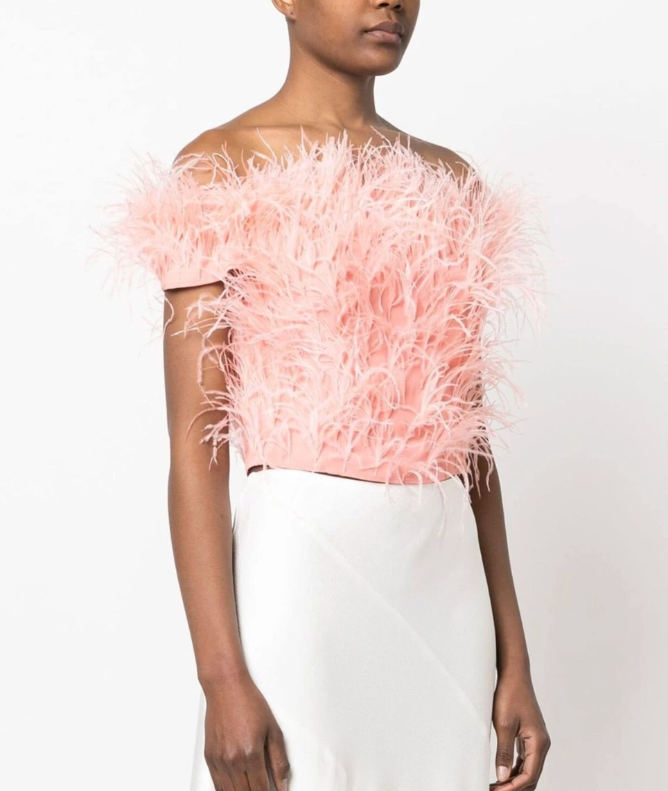 Cult Gaia Pink Ostrich Feather-Detail Crop Off Shoulder Top