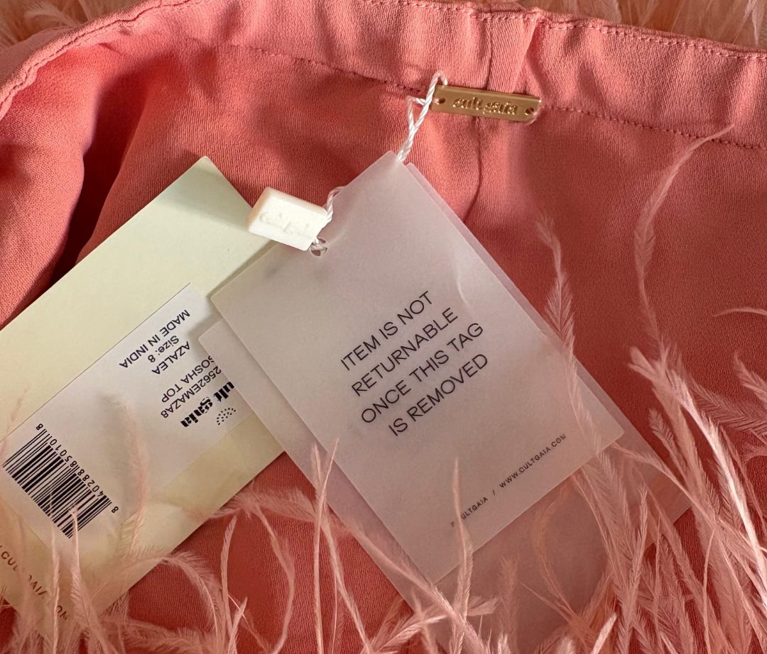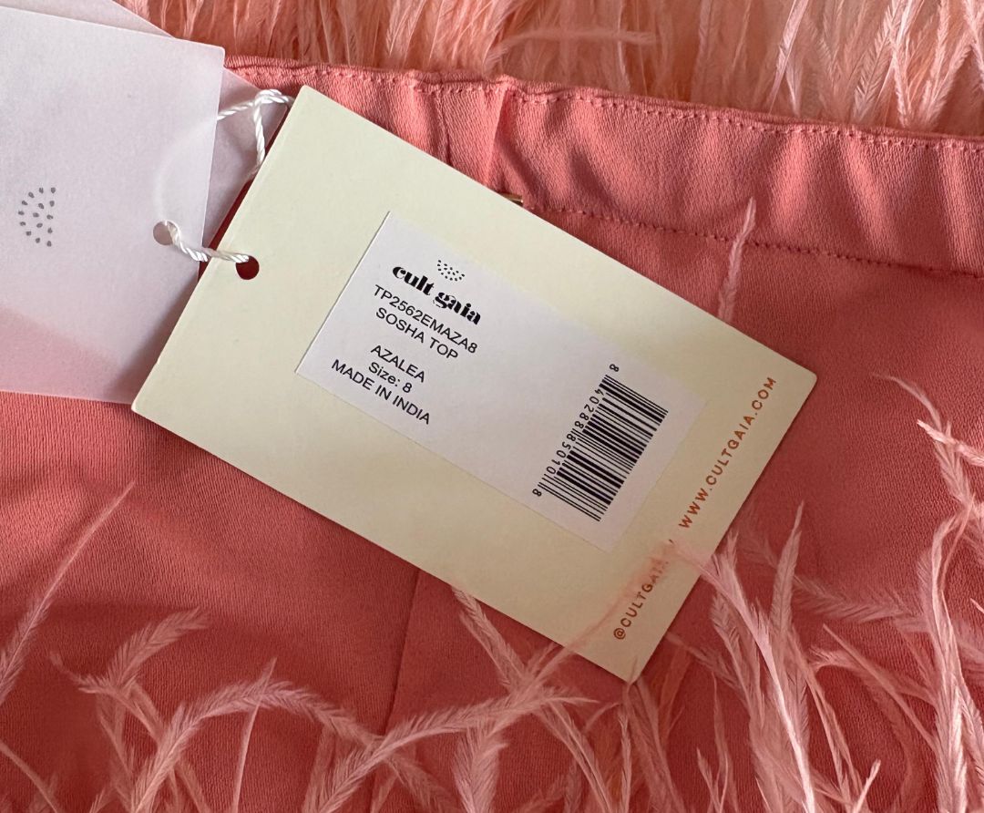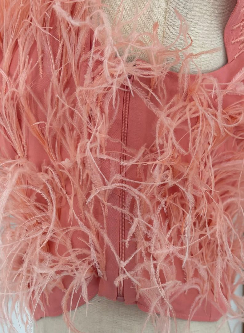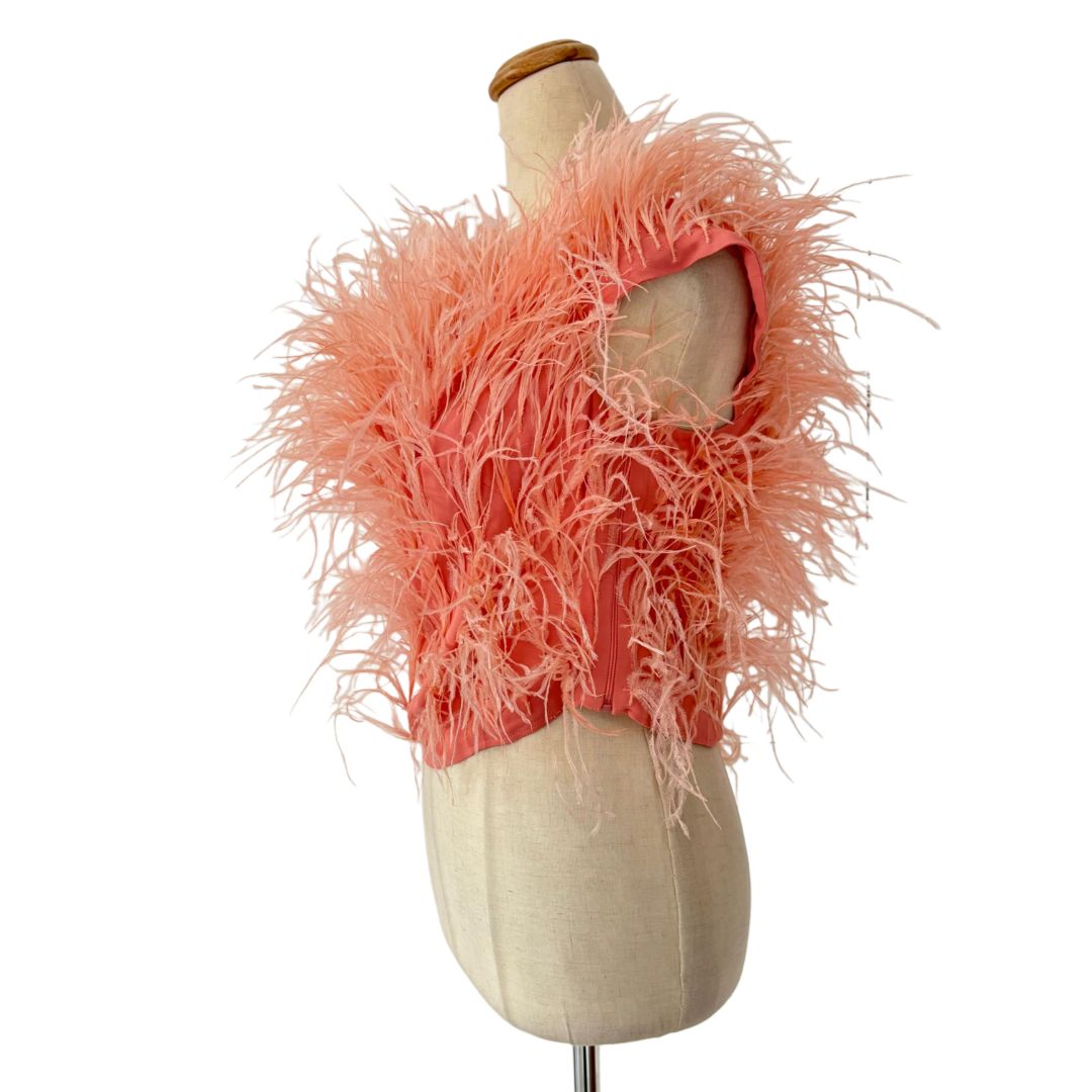 Cult Gaia Pink Ostrich Feather-Detail Crop Off Shoulder Top