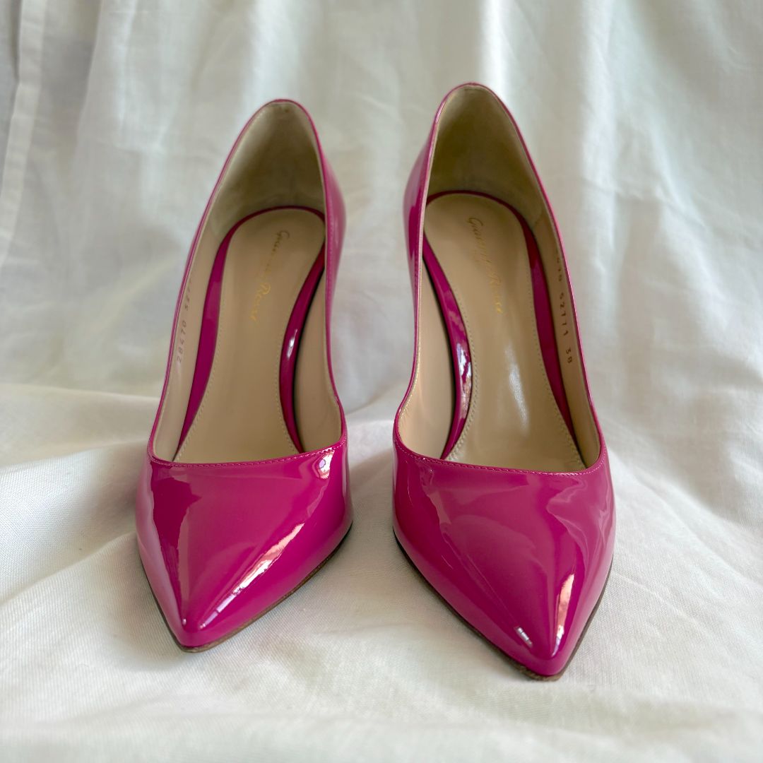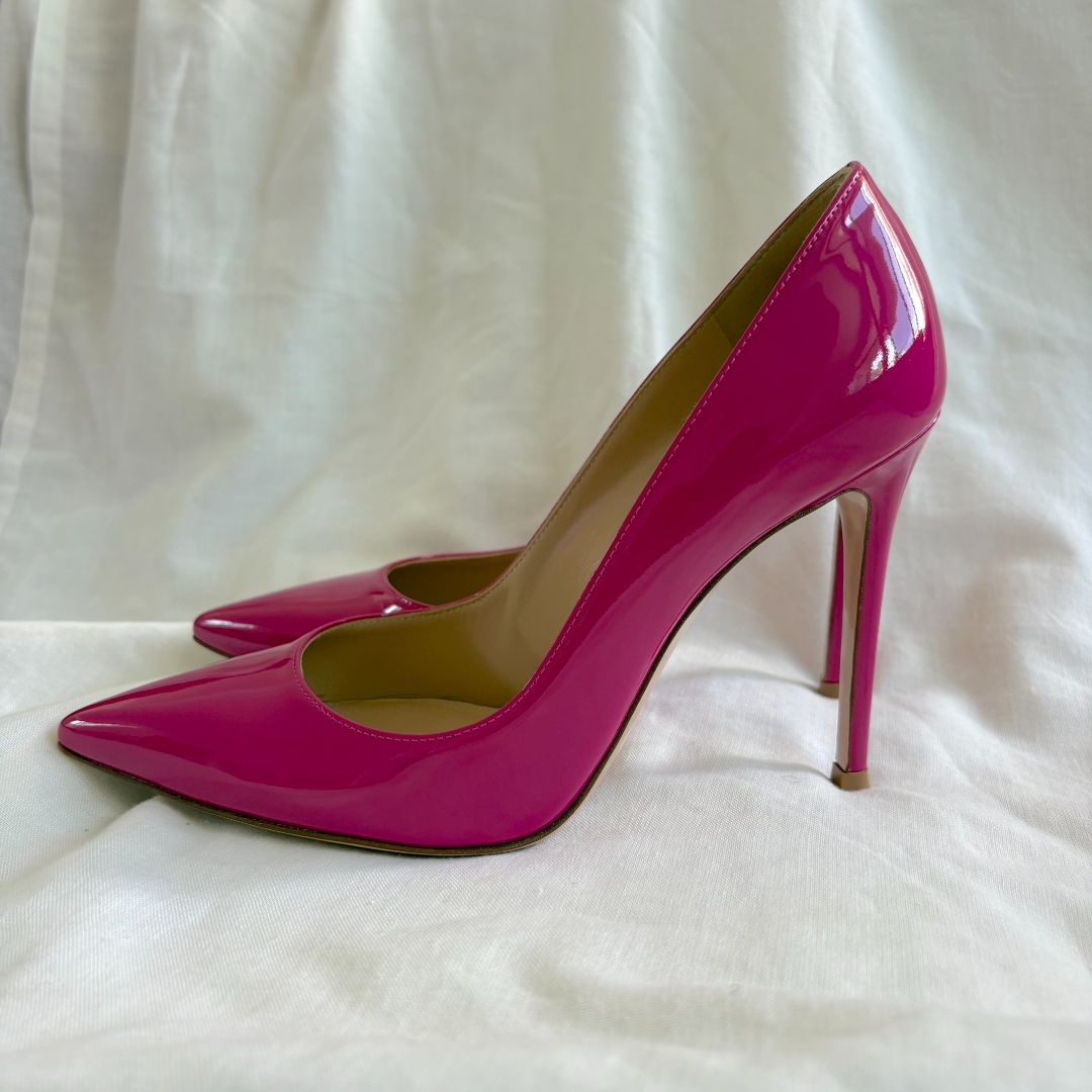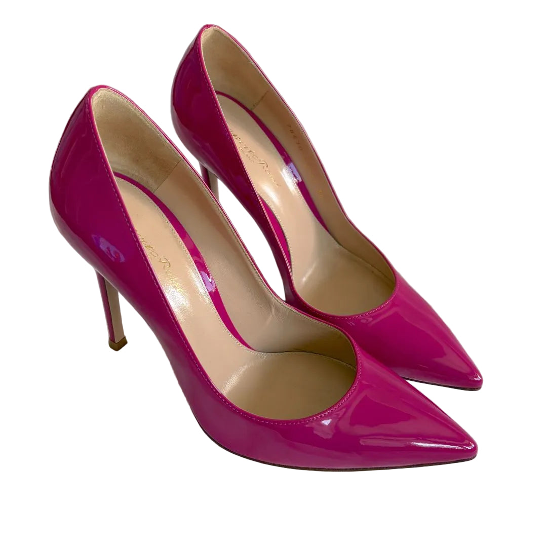 Gianvito Rossi pink patent leather pointed toe pumps, size 38
