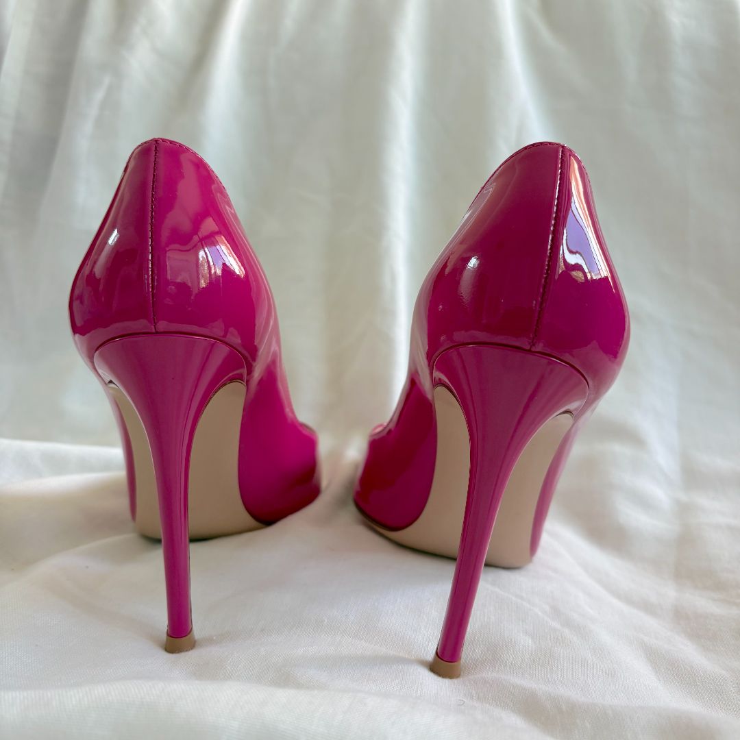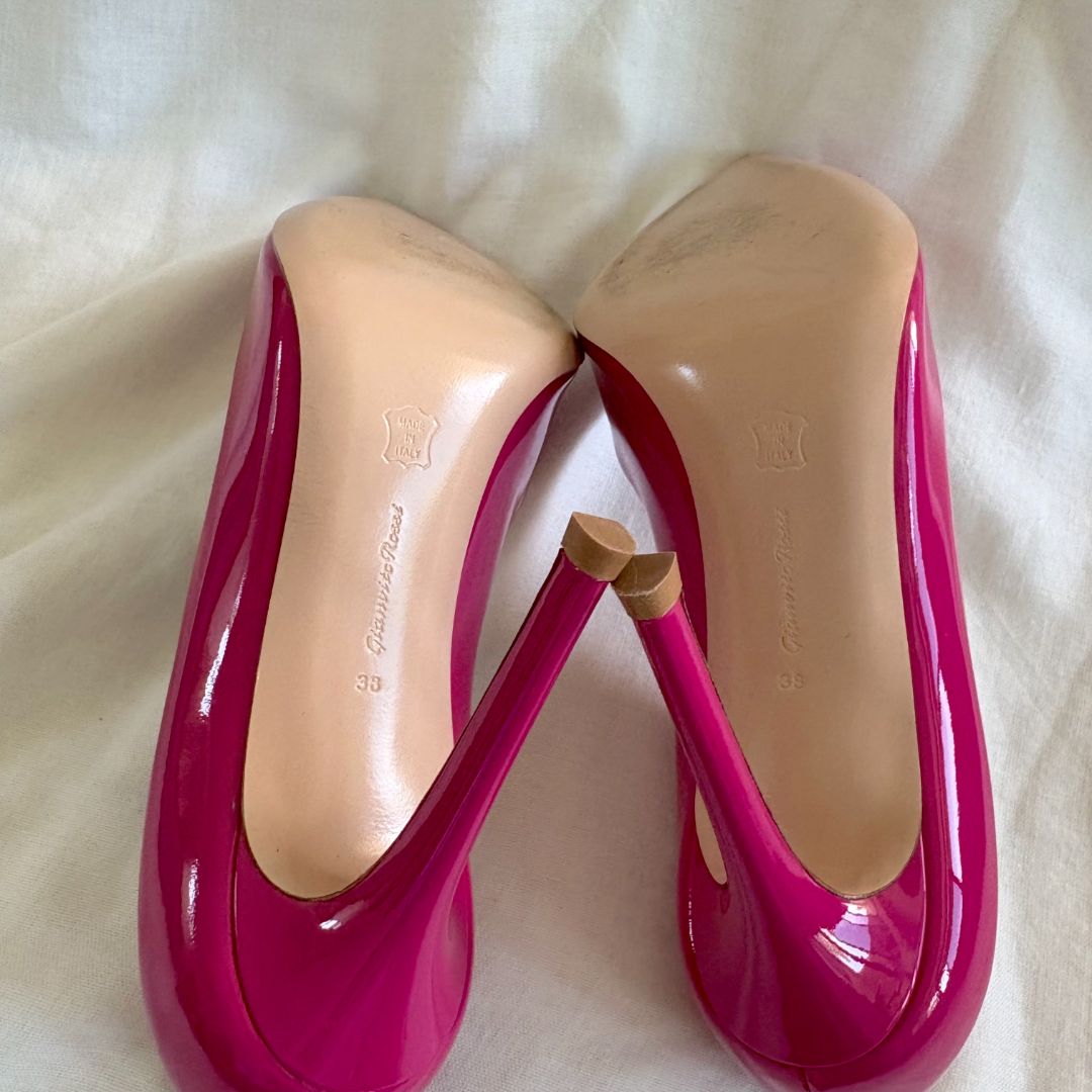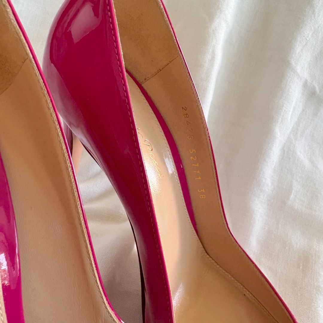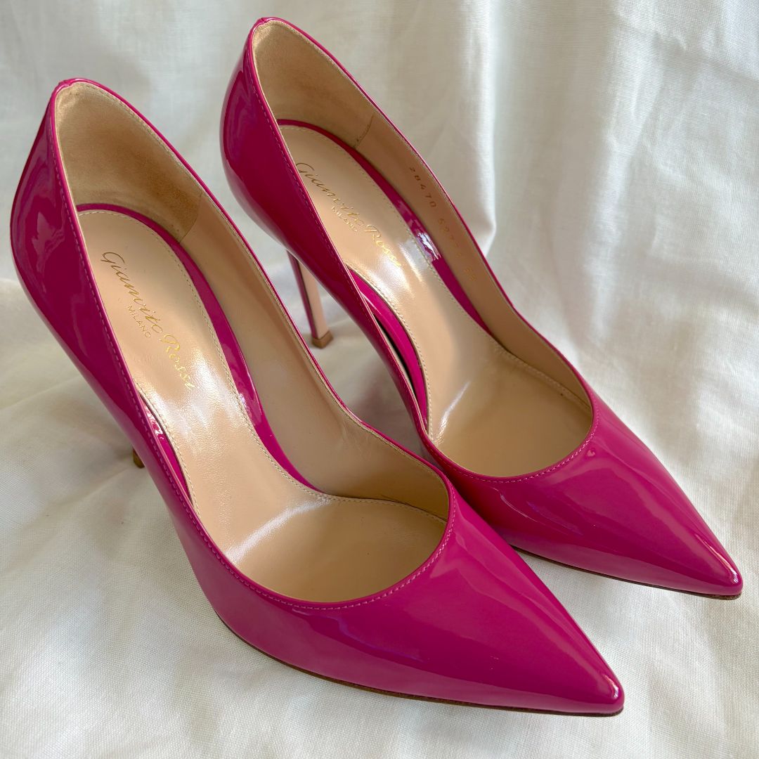 Gianvito Rossi pink patent leather pointed toe pumps, size 38