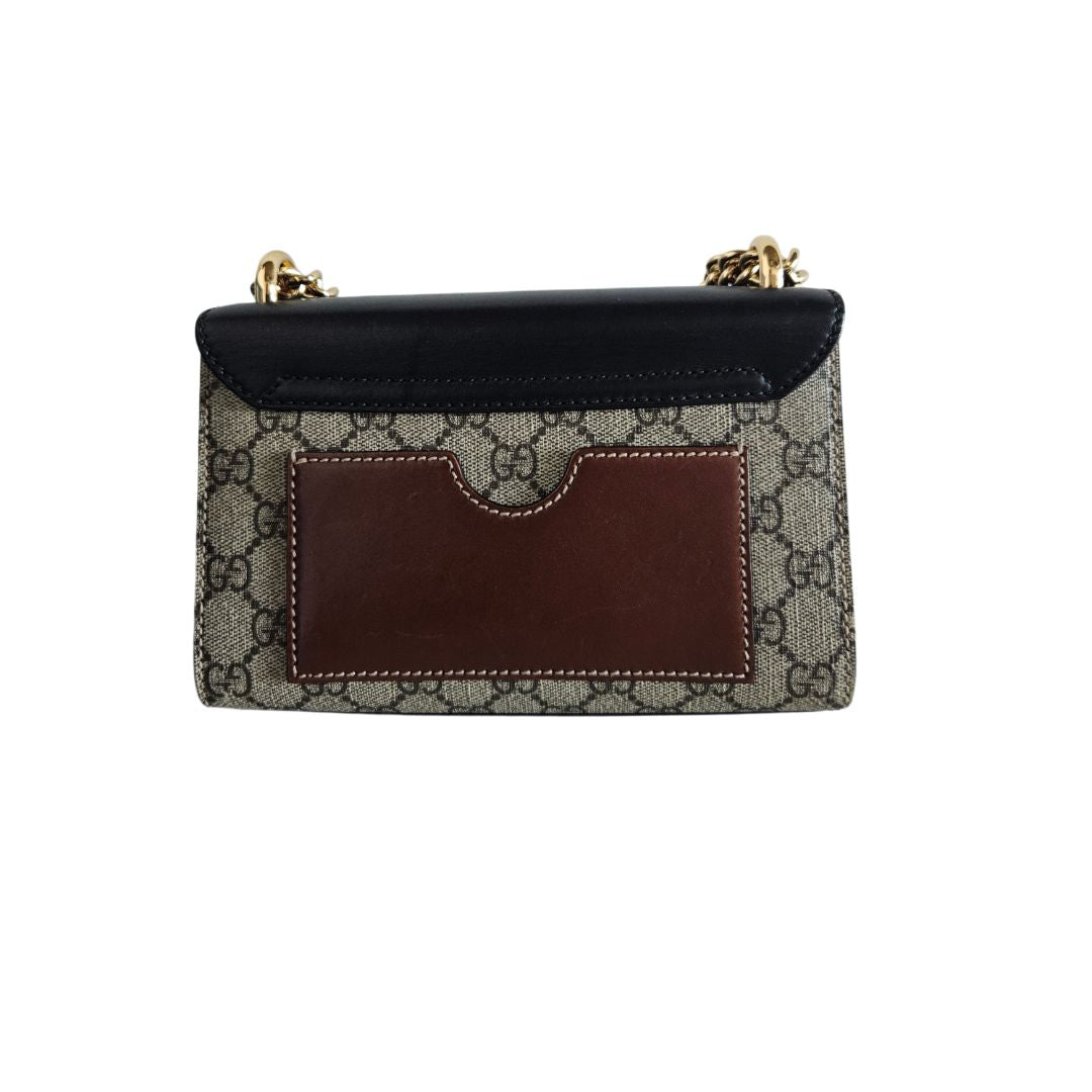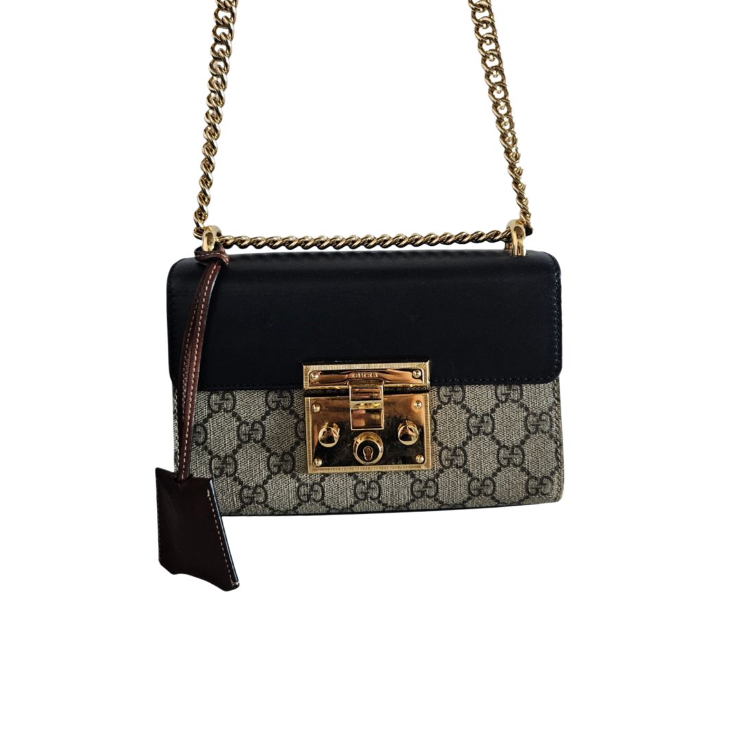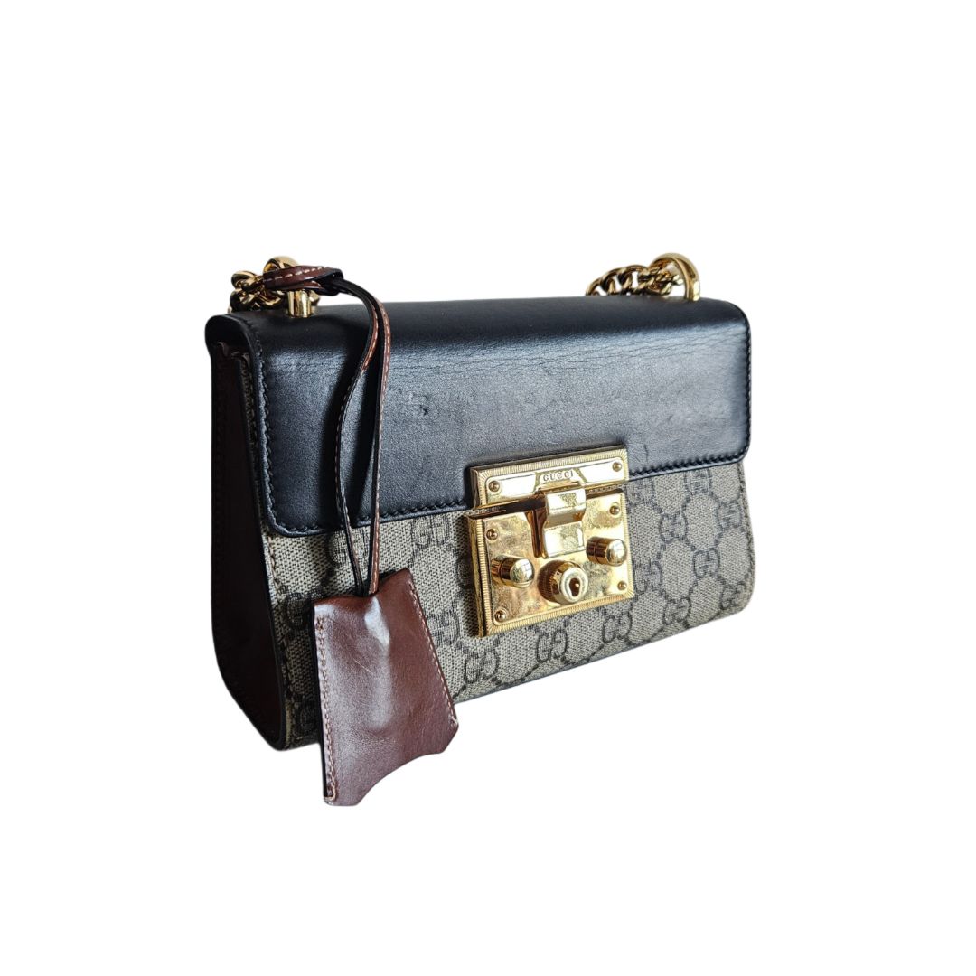 Gucci Black/Beige GG Supreme Canvas & leather Padlock Shoulder Bag