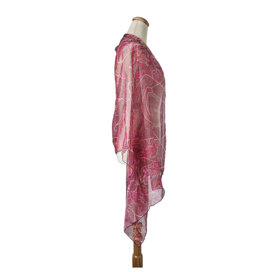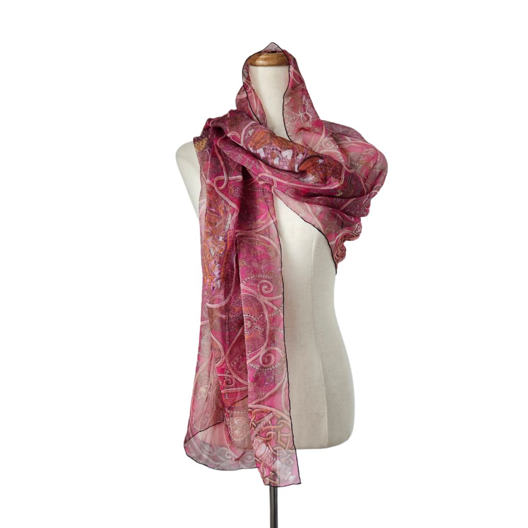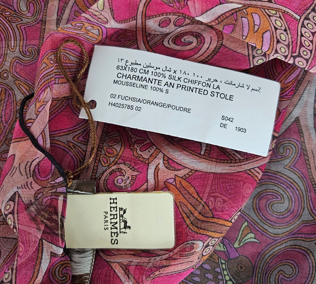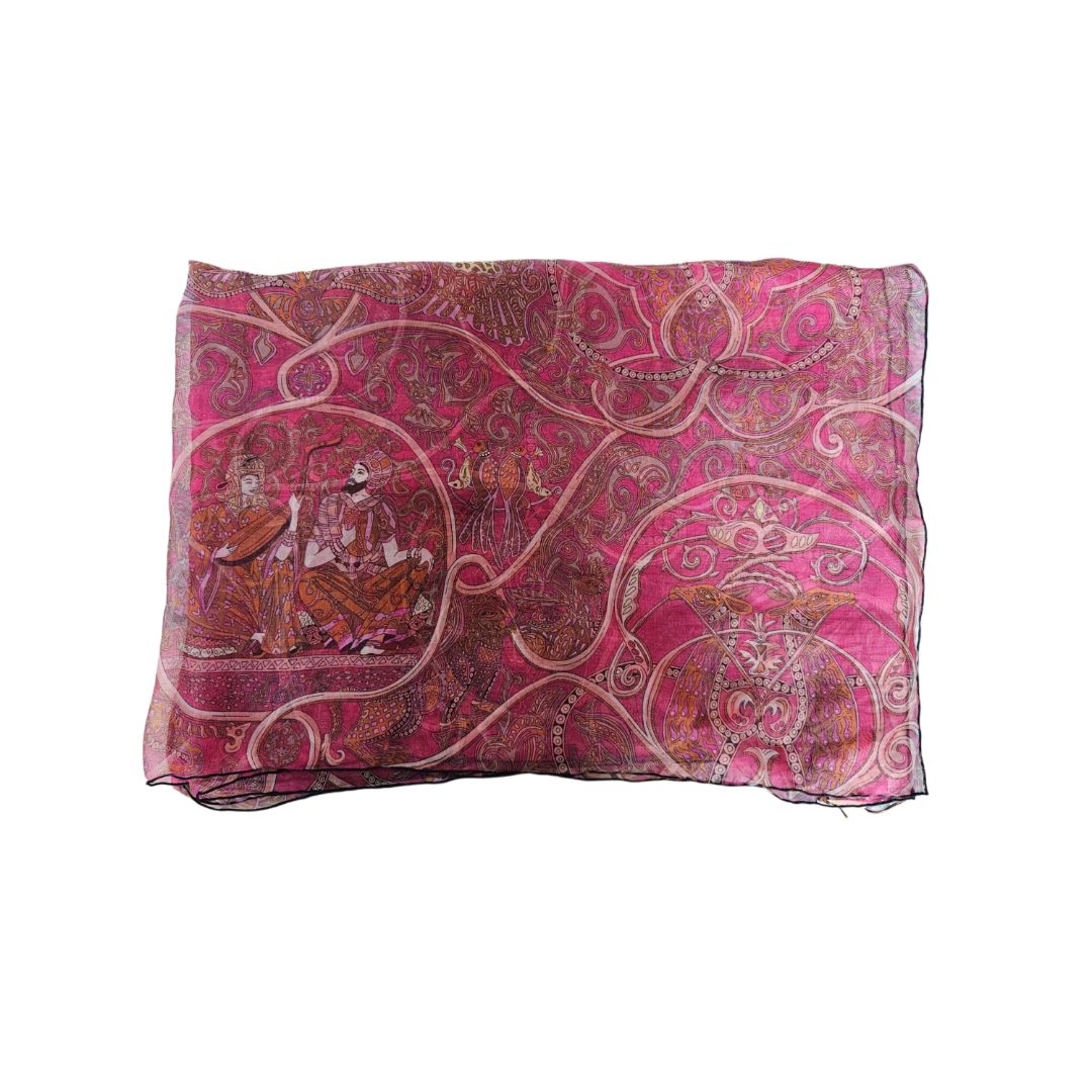 Hermes Pink Multicolor Printed Chiffon Silk Scarf