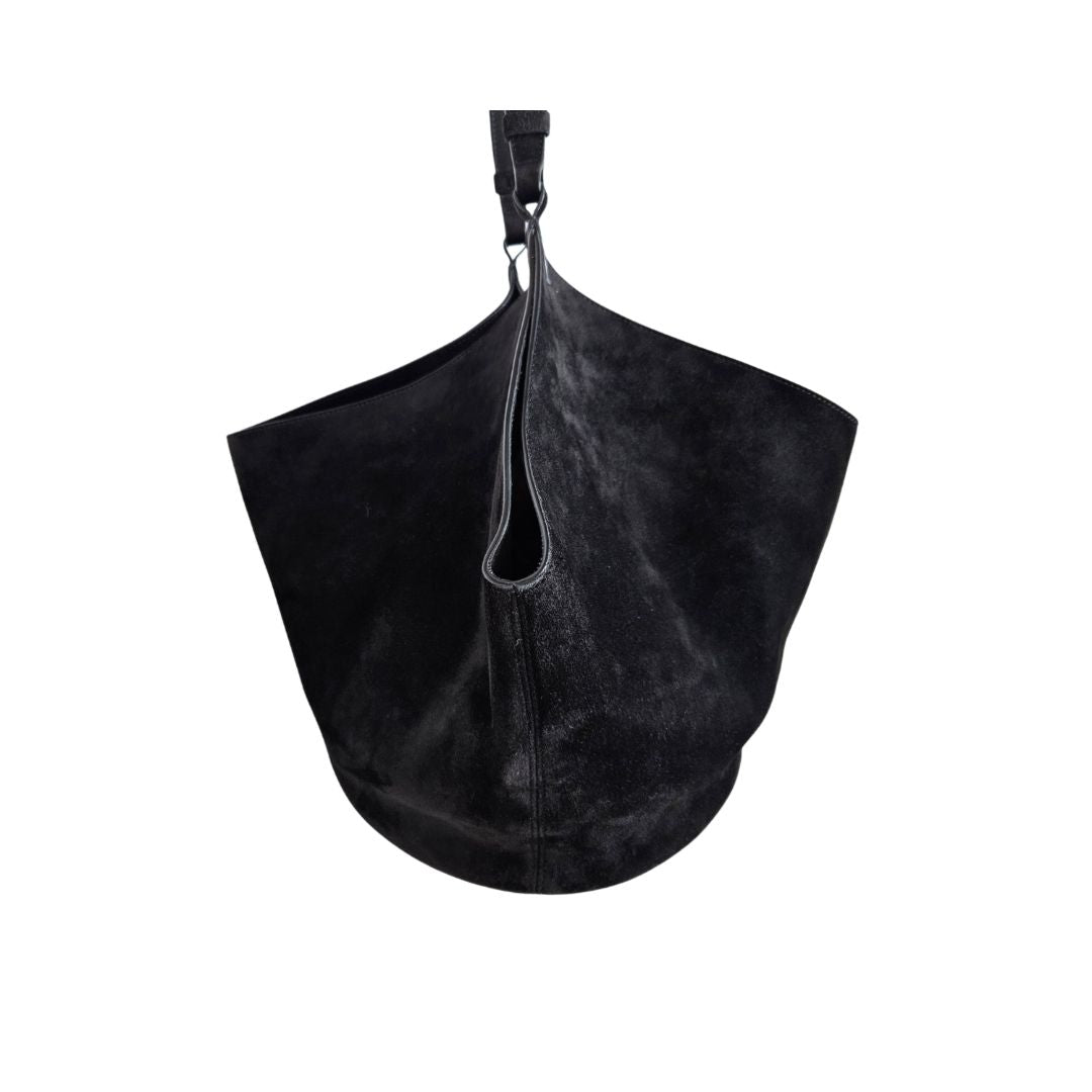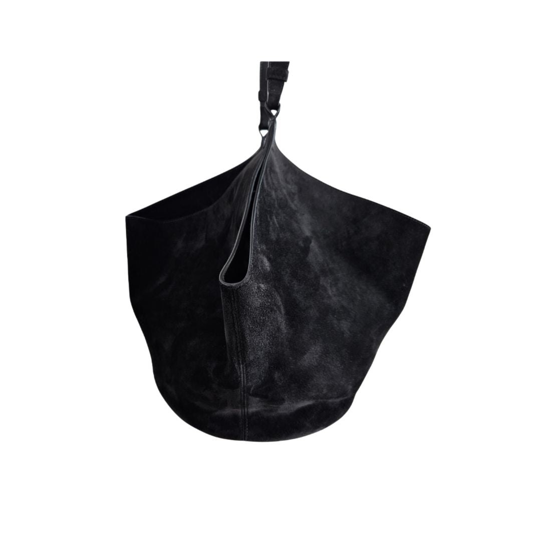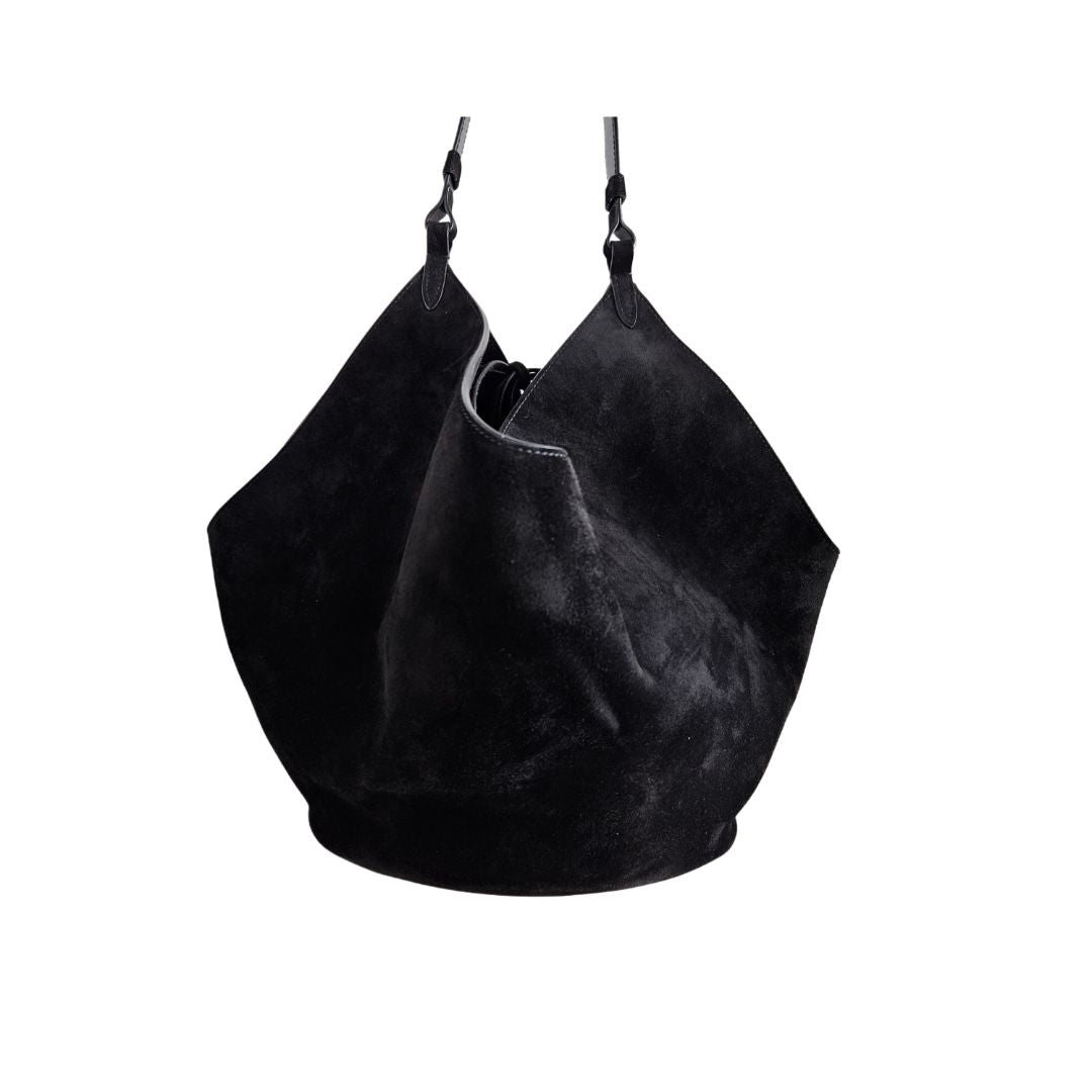 Khaite Black Suede Lotus Shoulder Tote Bag