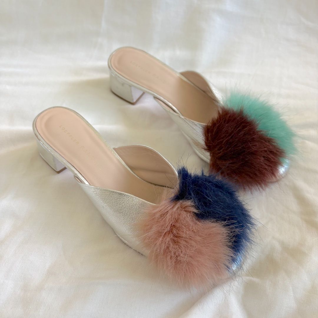 Loeffler Randall silver leather shoes with fur on vamp
