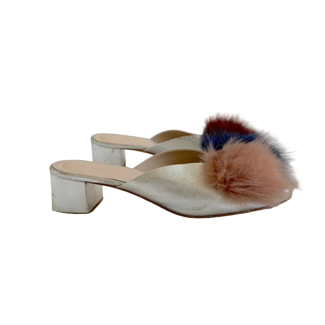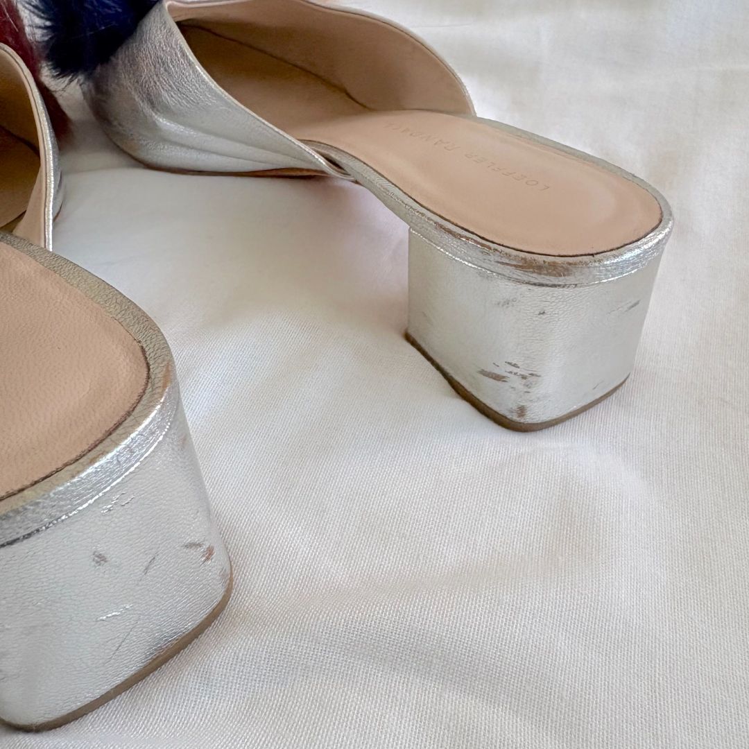 Loeffler Randall silver leather shoes with fur on vamp , size 38