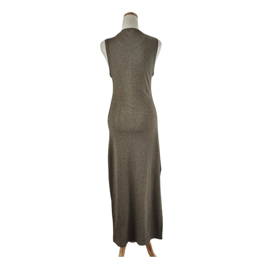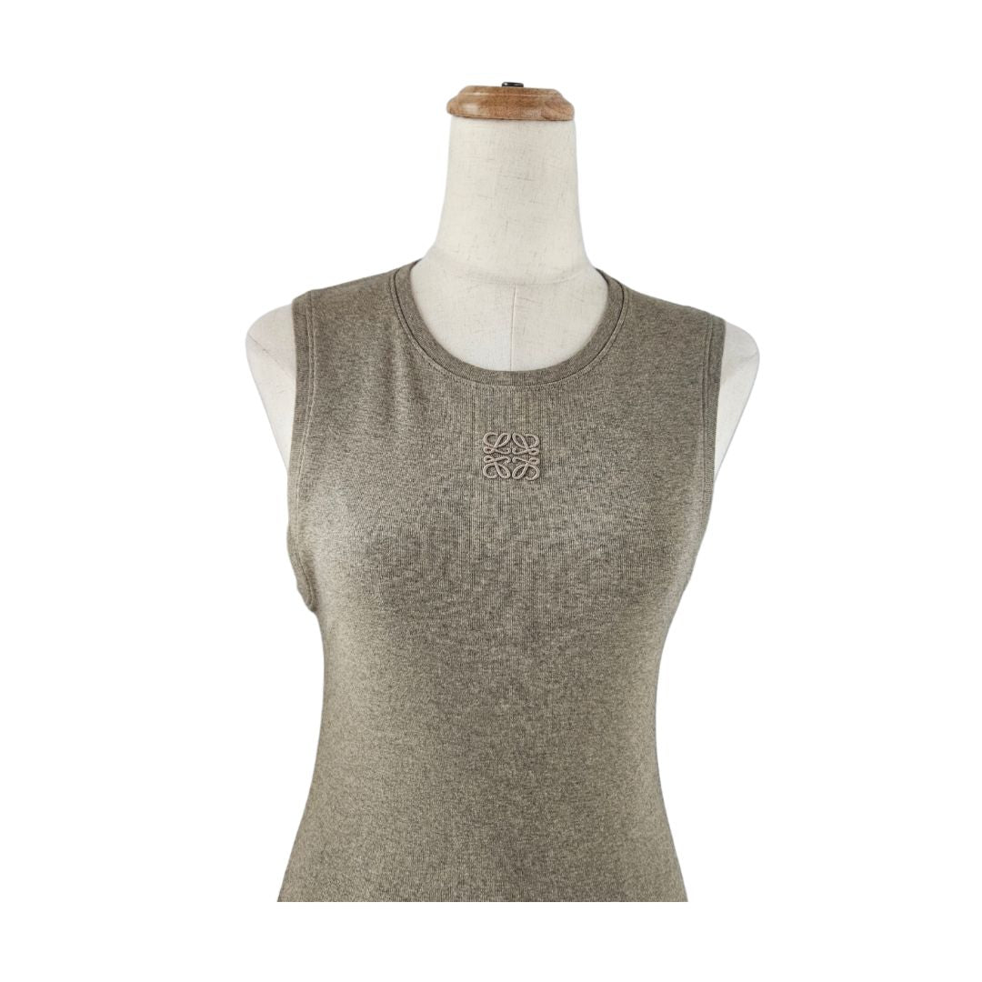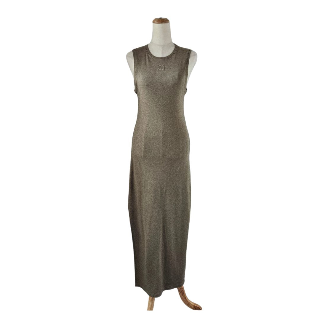 Loewe Khaki Anagram Embroidered Wool-Blend Jersey Sleeveless Long Dress