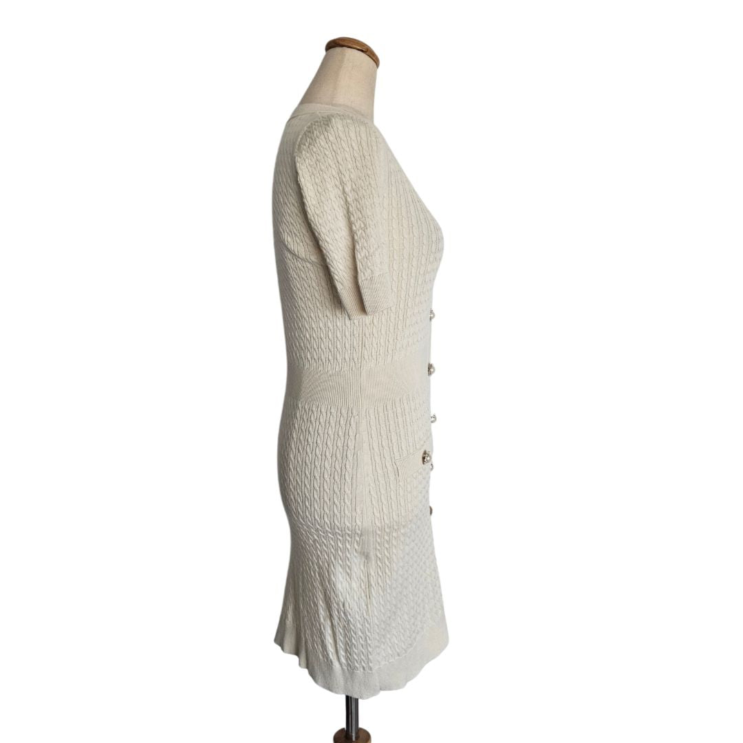 Lovers and Friends Cream Faux Pearl & Crystal Button Up Bodycon Dress