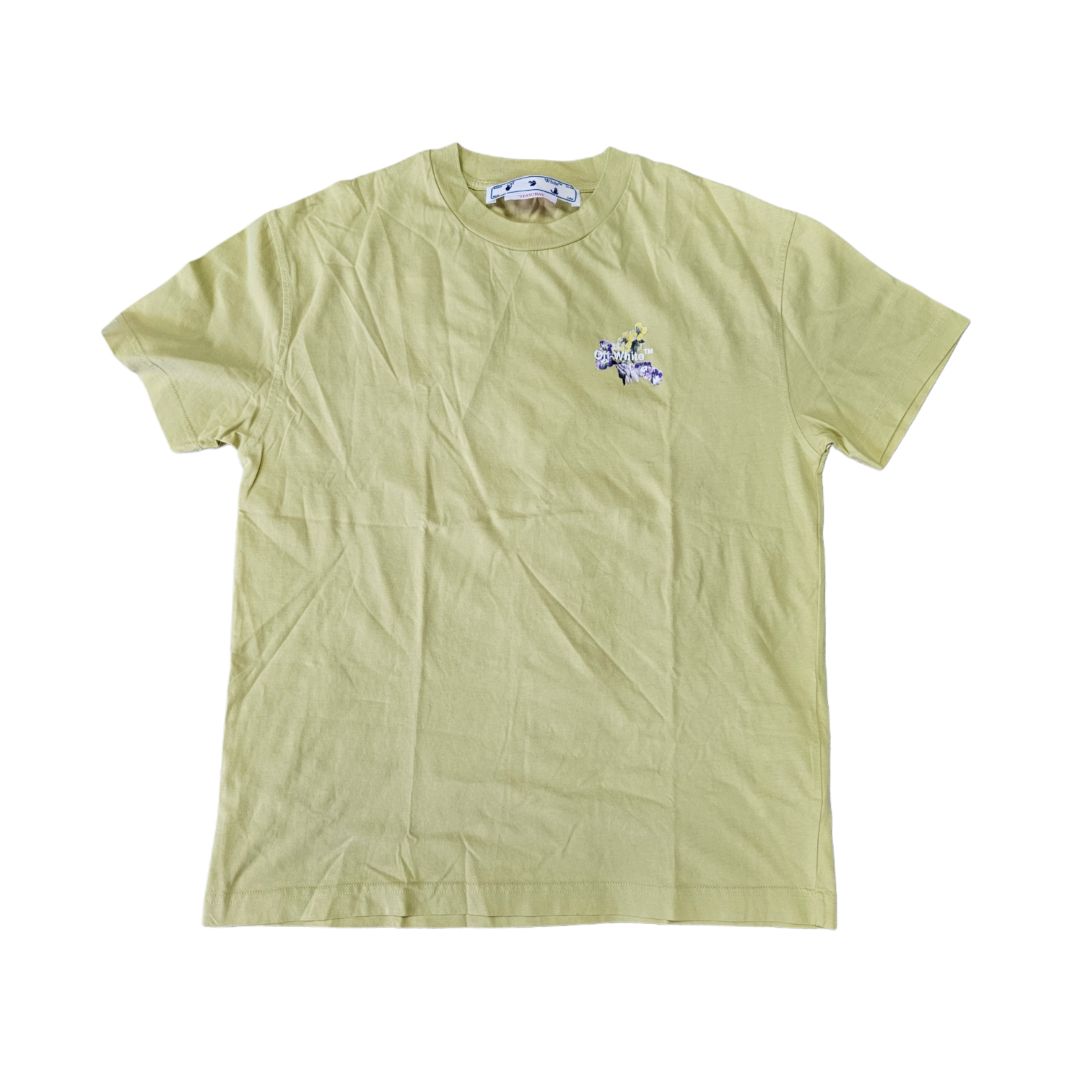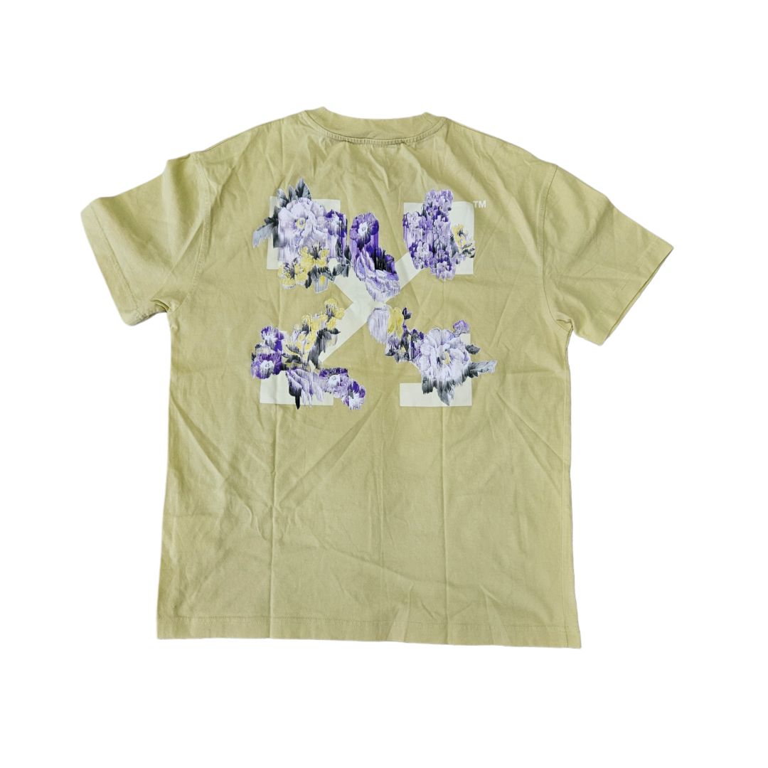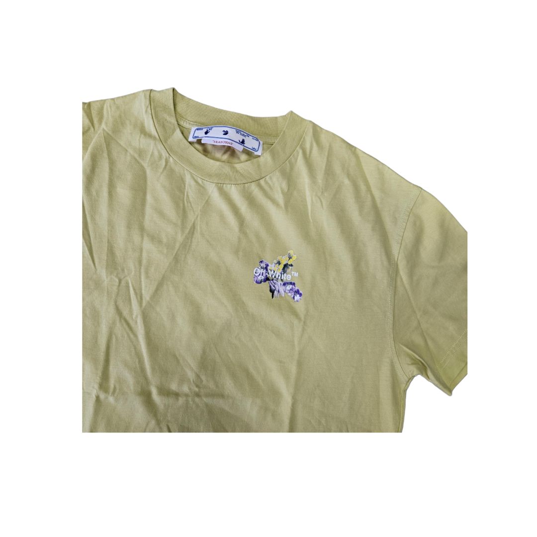 Off-White Light Yellow With Floral Design At The Back T Shirt