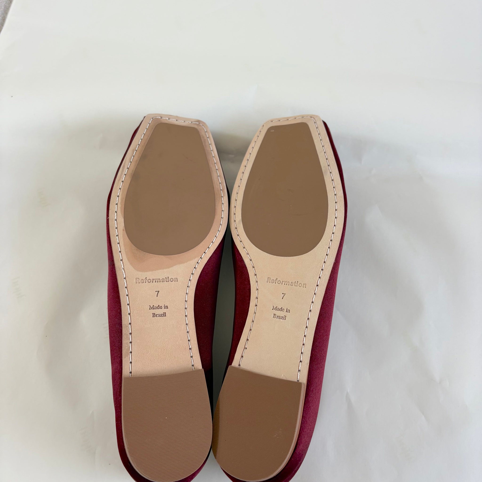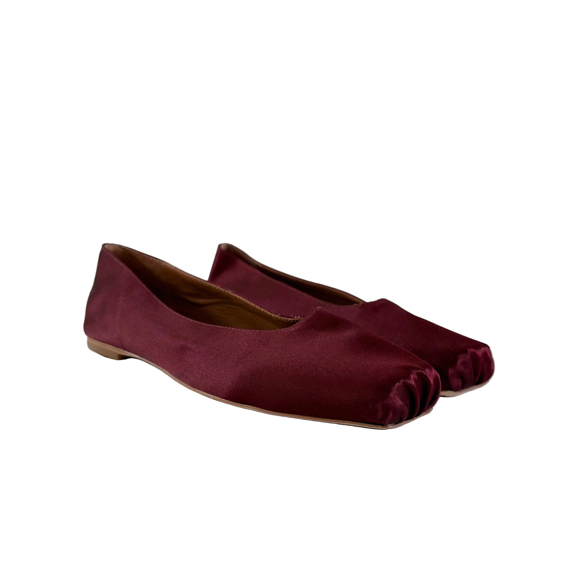 Reformation Maroon Satin Mikayla Ballet Flats, Size 7