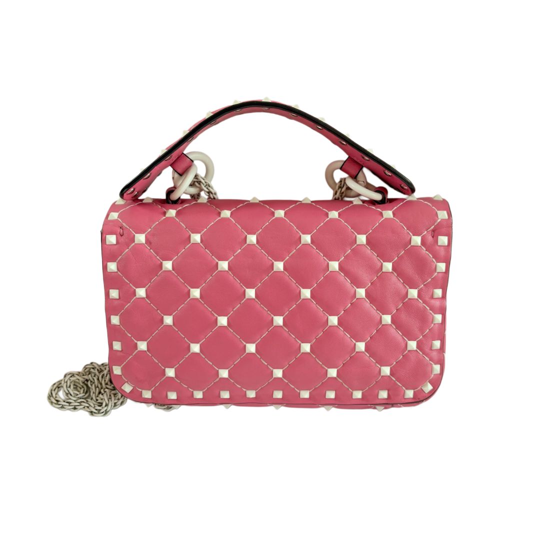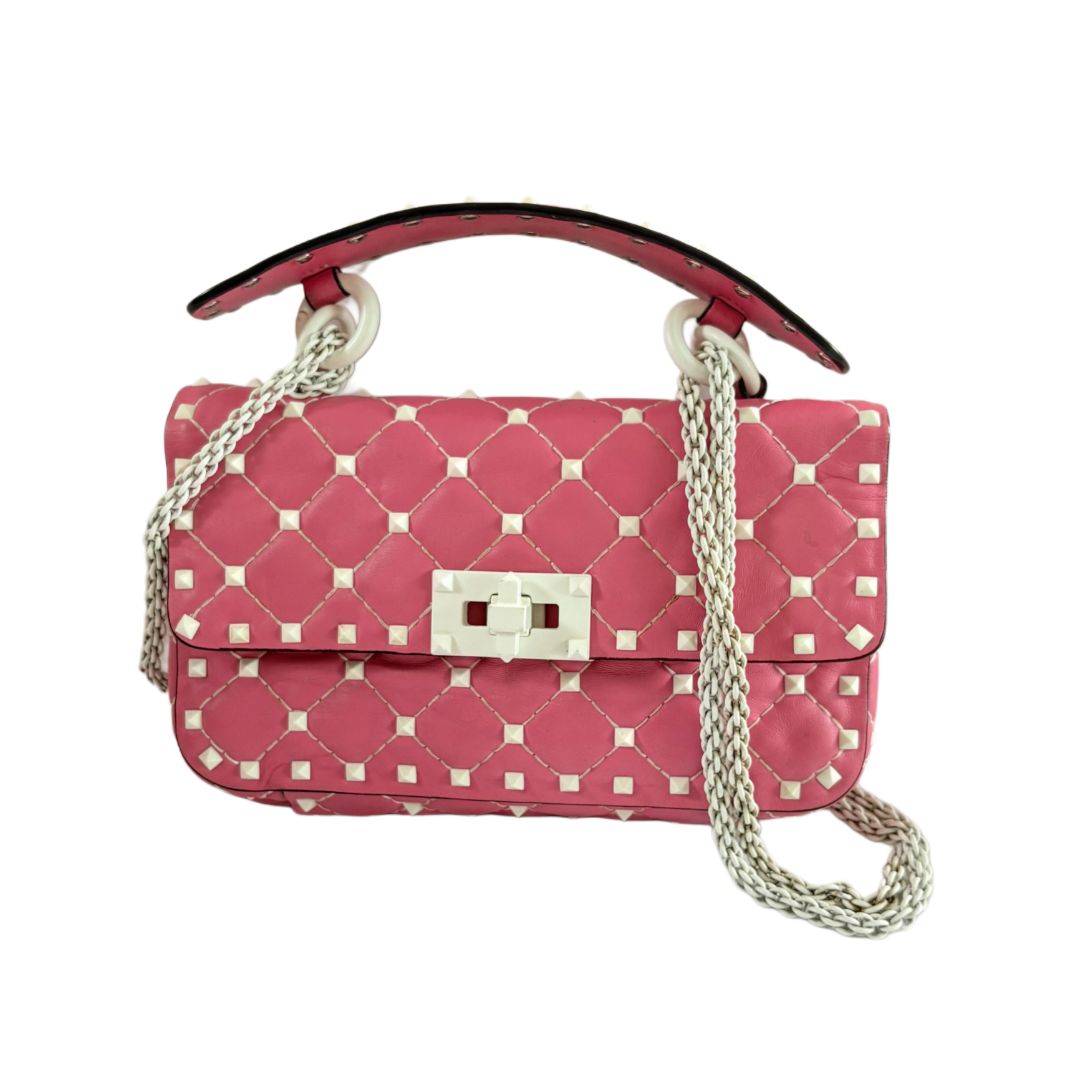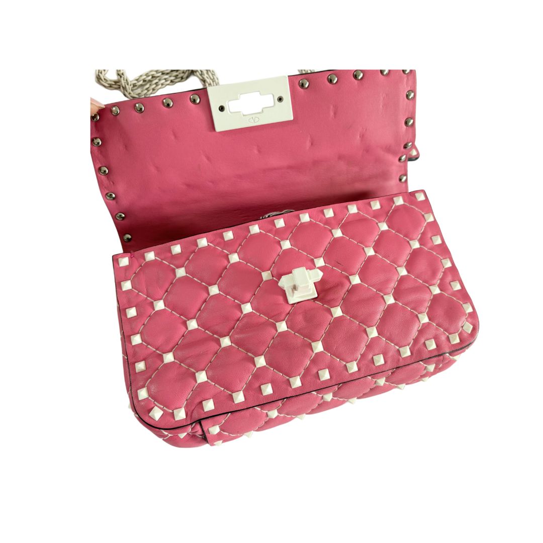 Valentino Garavani Leather Pink Small Rock Stud Spike Flap Bag