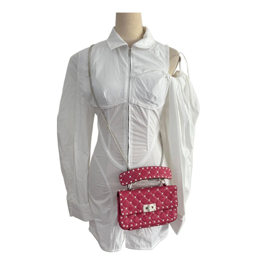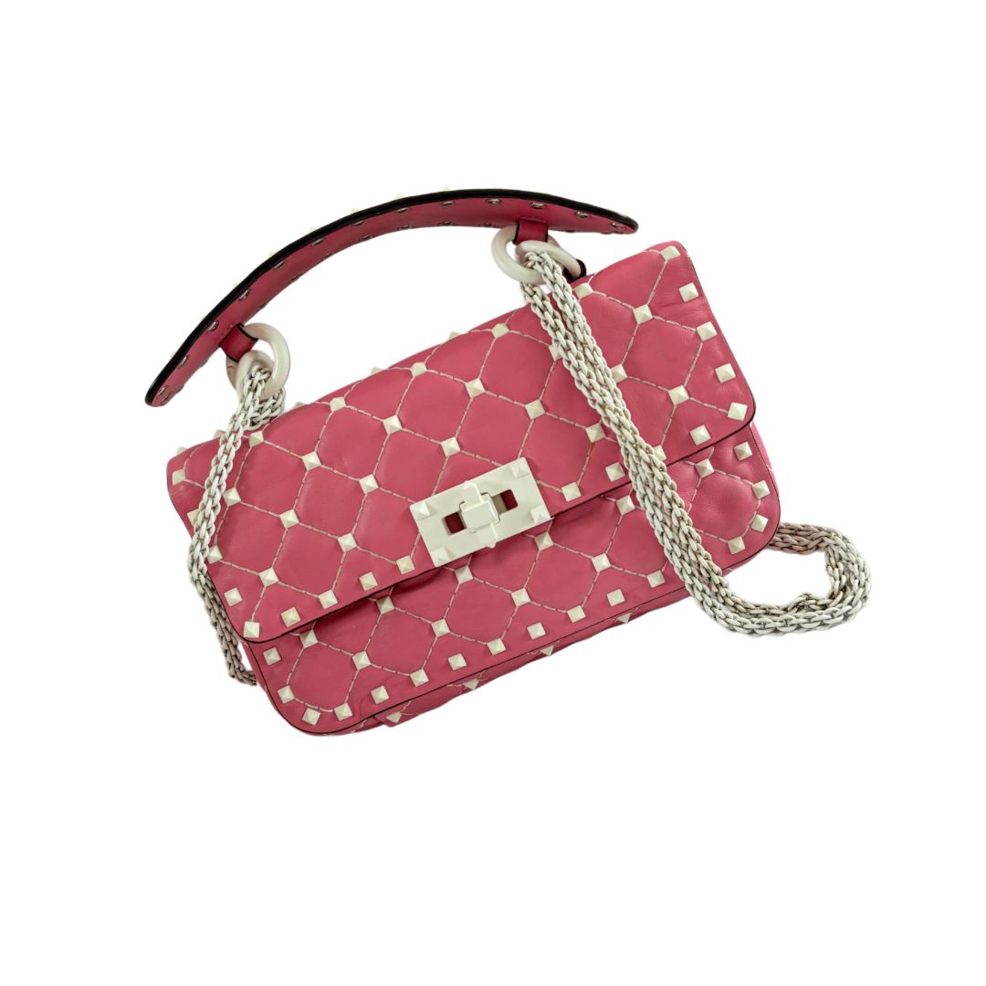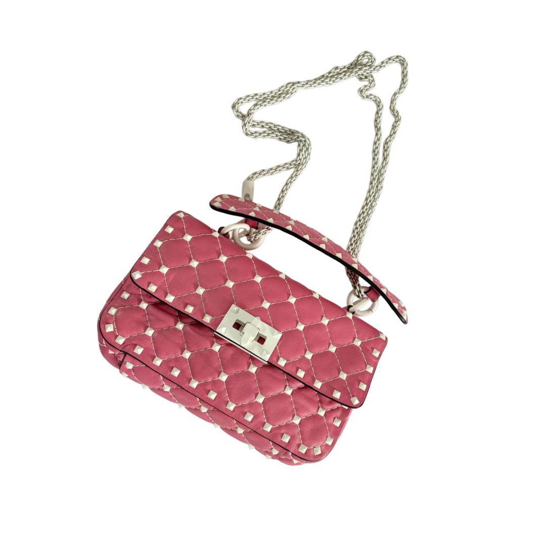 Valentino Garavani Leather Pink Small Rock Stud Spike Flap Bag
